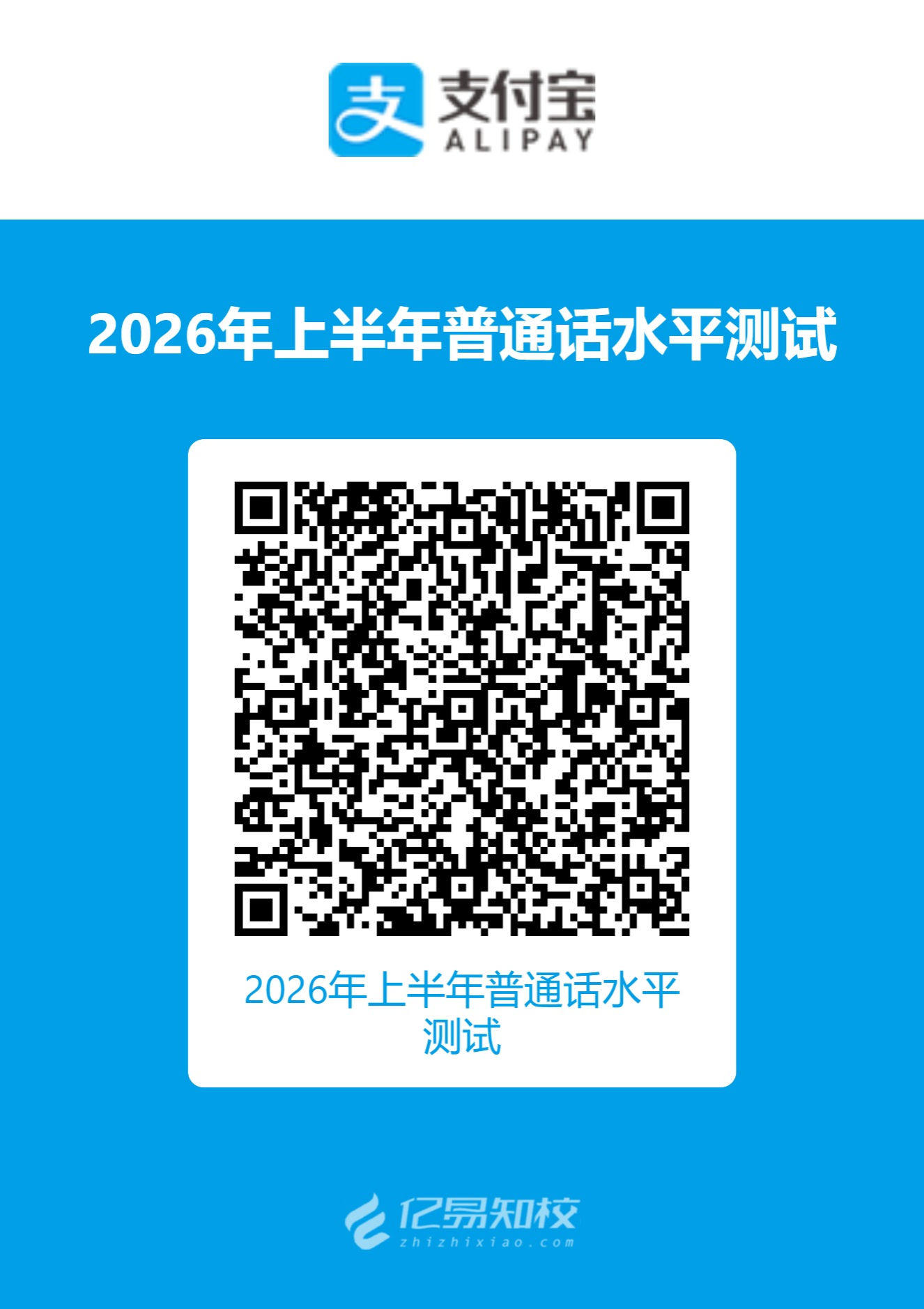(1)打开支付宝,扫码“2026年上半年普通话考试报名”支付二维码: