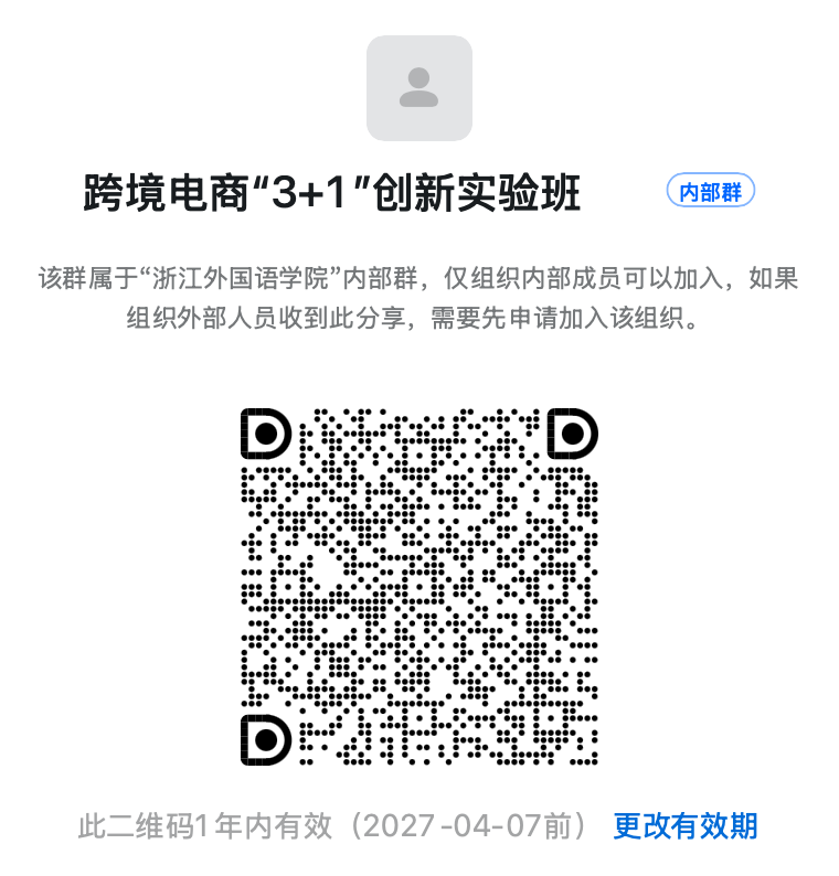 2、有意愿加入创业学院的同学请在钉钉上搜索:跨境电商实验班招生咨询群,或扫描钉钉群二维码入群(二维码见文末)。需要进一步了解“3+1”创新实验班的同学,可至望院B213办公室现场咨询。