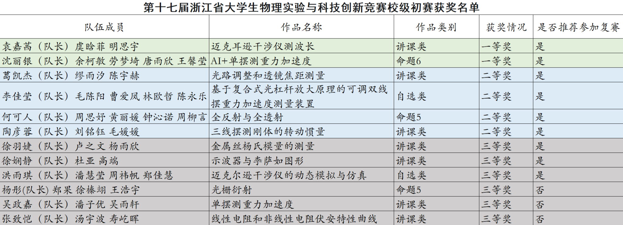 第十七届大学生物理实验与科技创新竞赛是省级A类竞赛,浙江外国语学院校级初赛由教务处主办,教育学院承办。本届大赛于2026年3月初正式启动,参赛学生分别来自教育学院科学教育专业、数学与应用数学专业等,共计45名学生报名参赛。初赛于2026年4月23日顺利举办完成,经4位评审专家评议,现将获奖名单予以公布。