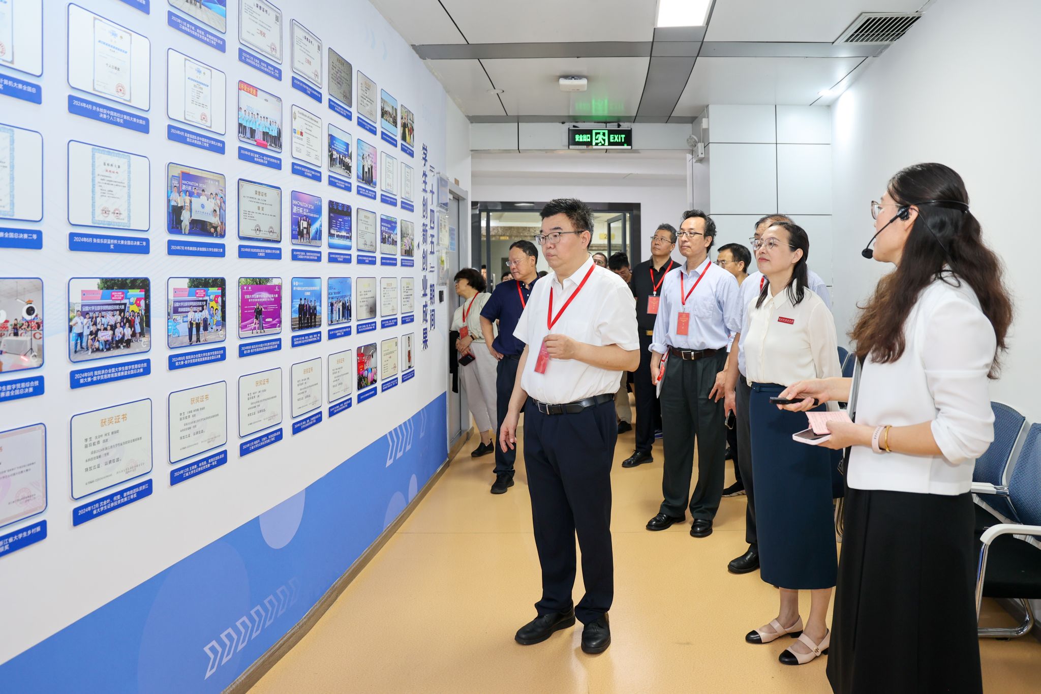 9月25日,专家组入校进行集中考察。入校说明会上,专家组对线上评估考察情况作了总结,并对入校考察主要任务进行了说明。入校评估阶段,专家组实地走访了教师教育实验室、跨境电商和文旅实验室、图书馆等场所,以及校内外实习实践基地和用人单位。期间,专家组进行了听课看课、访谈座谈,并现场听取学校发展汇报,与校领导、教师、学生、管理人员、毕业生代表及用人单位开展面对面深度交流,全面考察了我校的教学资源配置、教学管理和教育教学工作开展情况。此外,专家组还集中参观了学校办学成果展、科研成果展等特色内容。